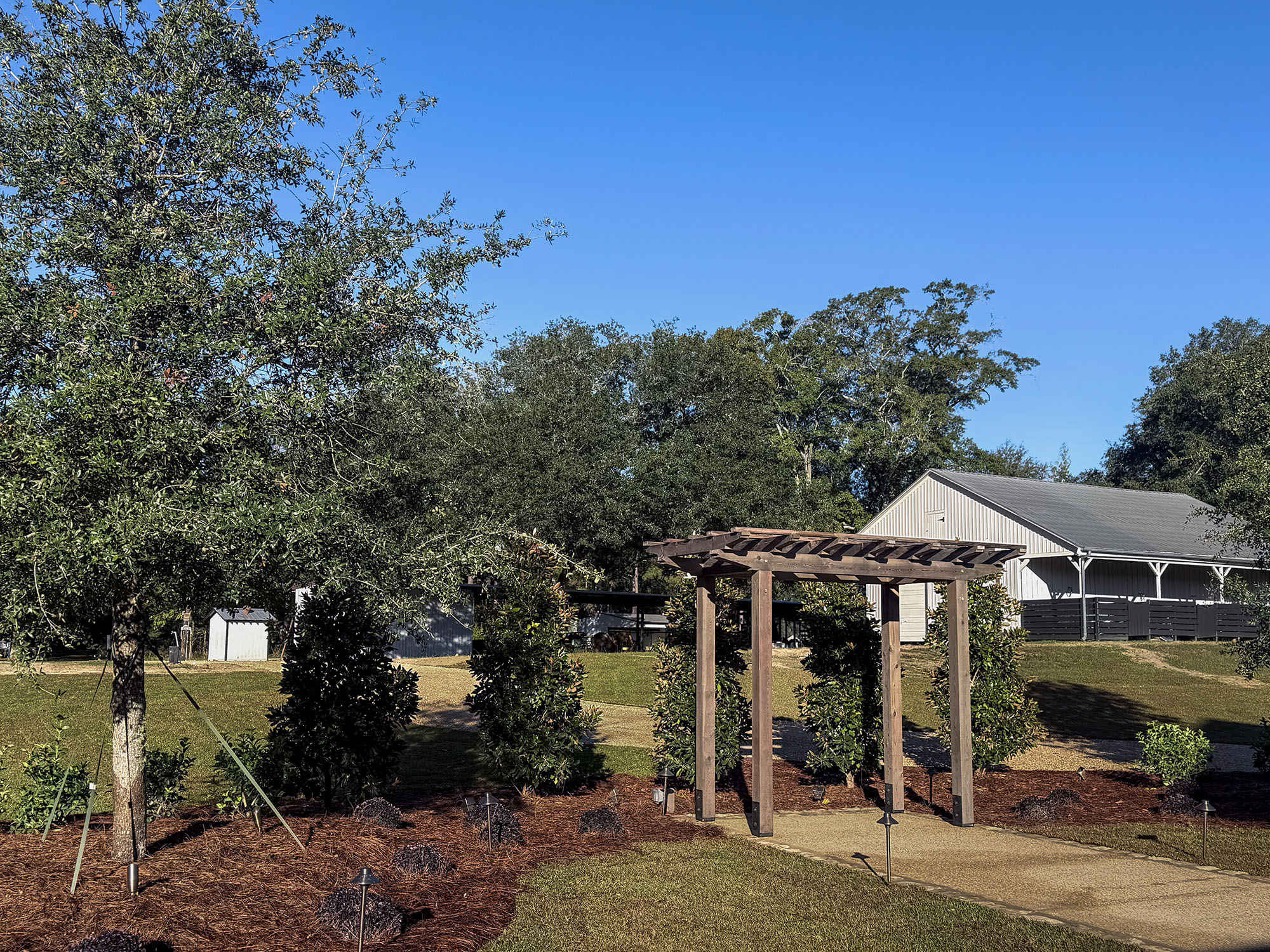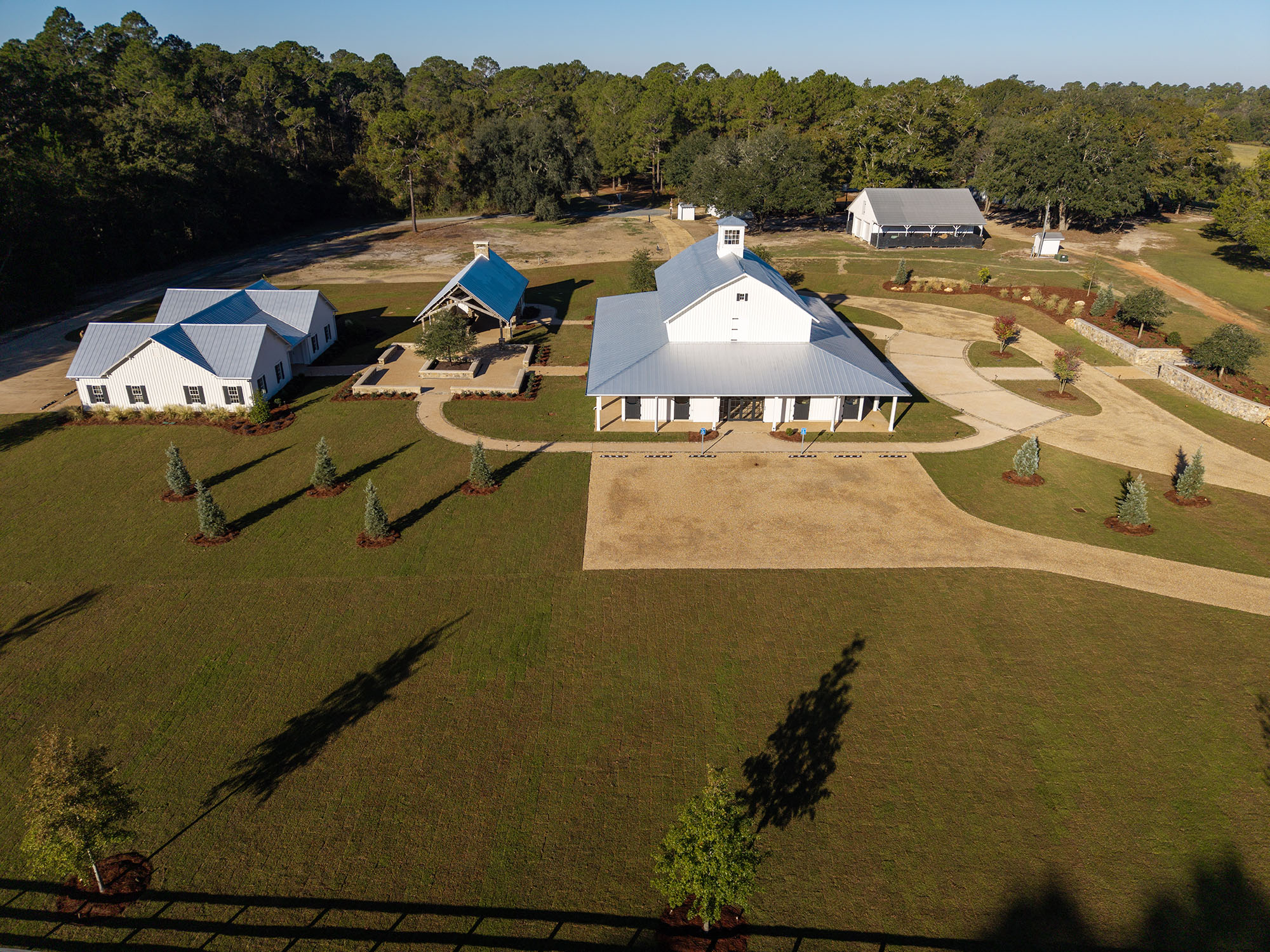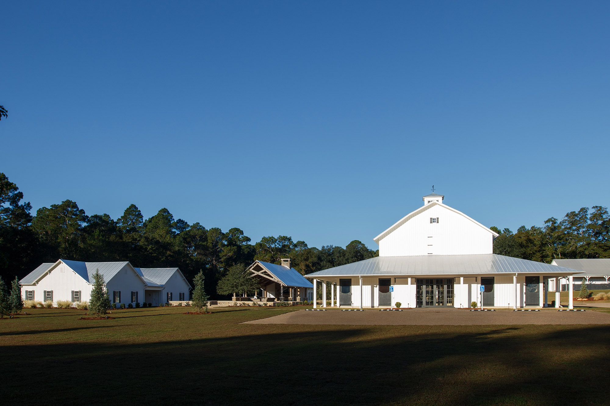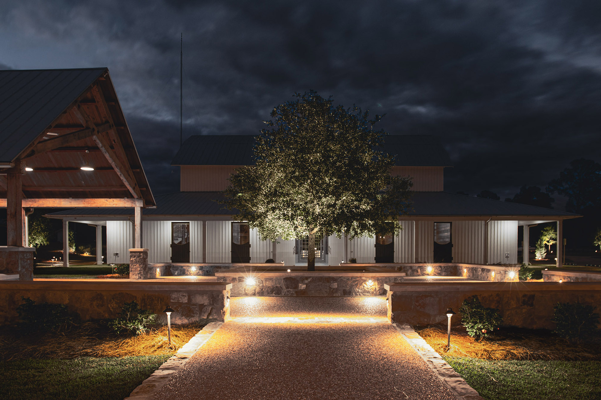 The Pavilion at Red Oaks is a design-build project and represents the first completed phase of a larger development. It serves as an accessory structure to major renovations of an existing barn at Red Oaks, which was renovated and completed in fall 2025 and will serve as the primary venue for future weddings.