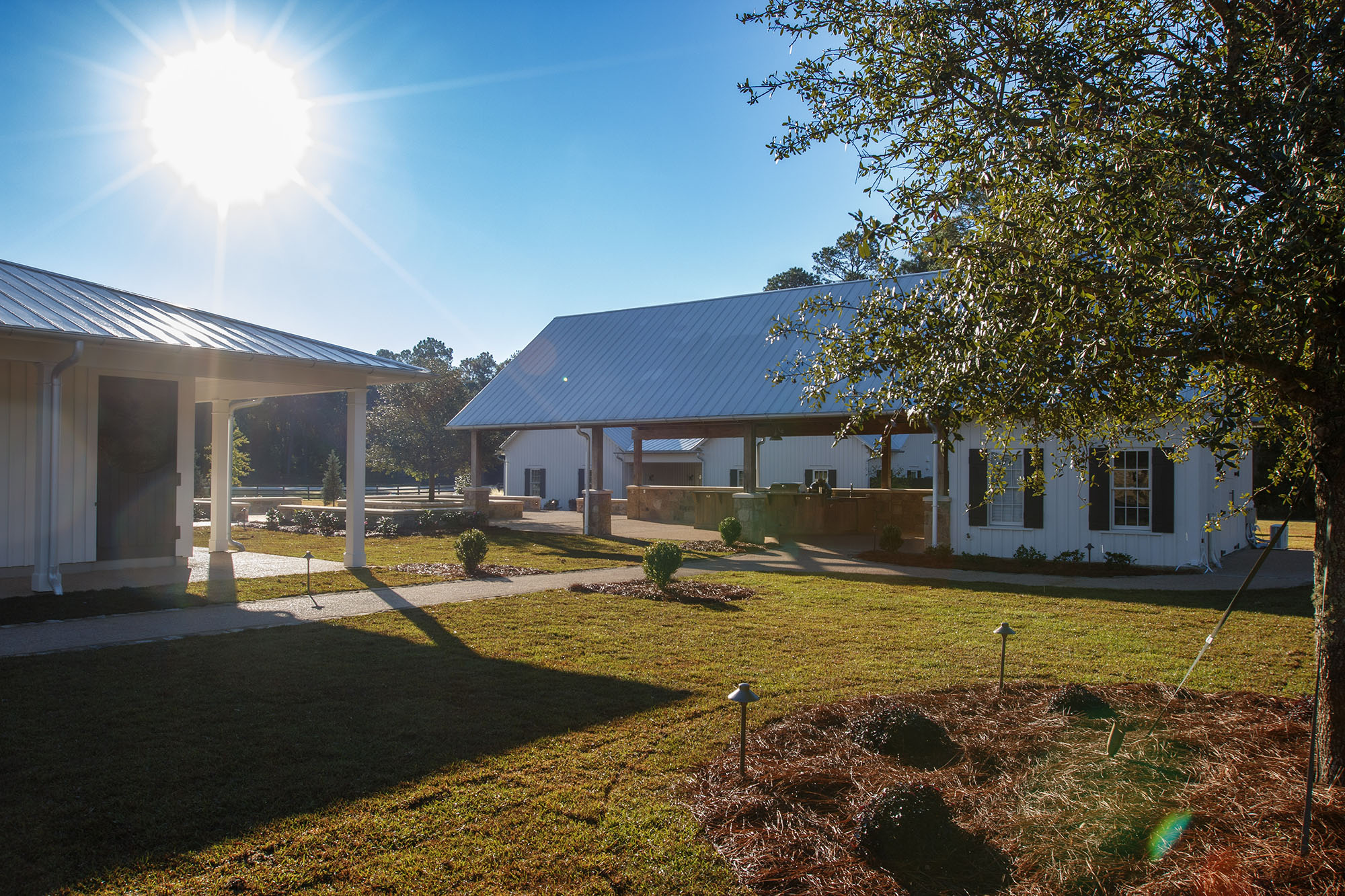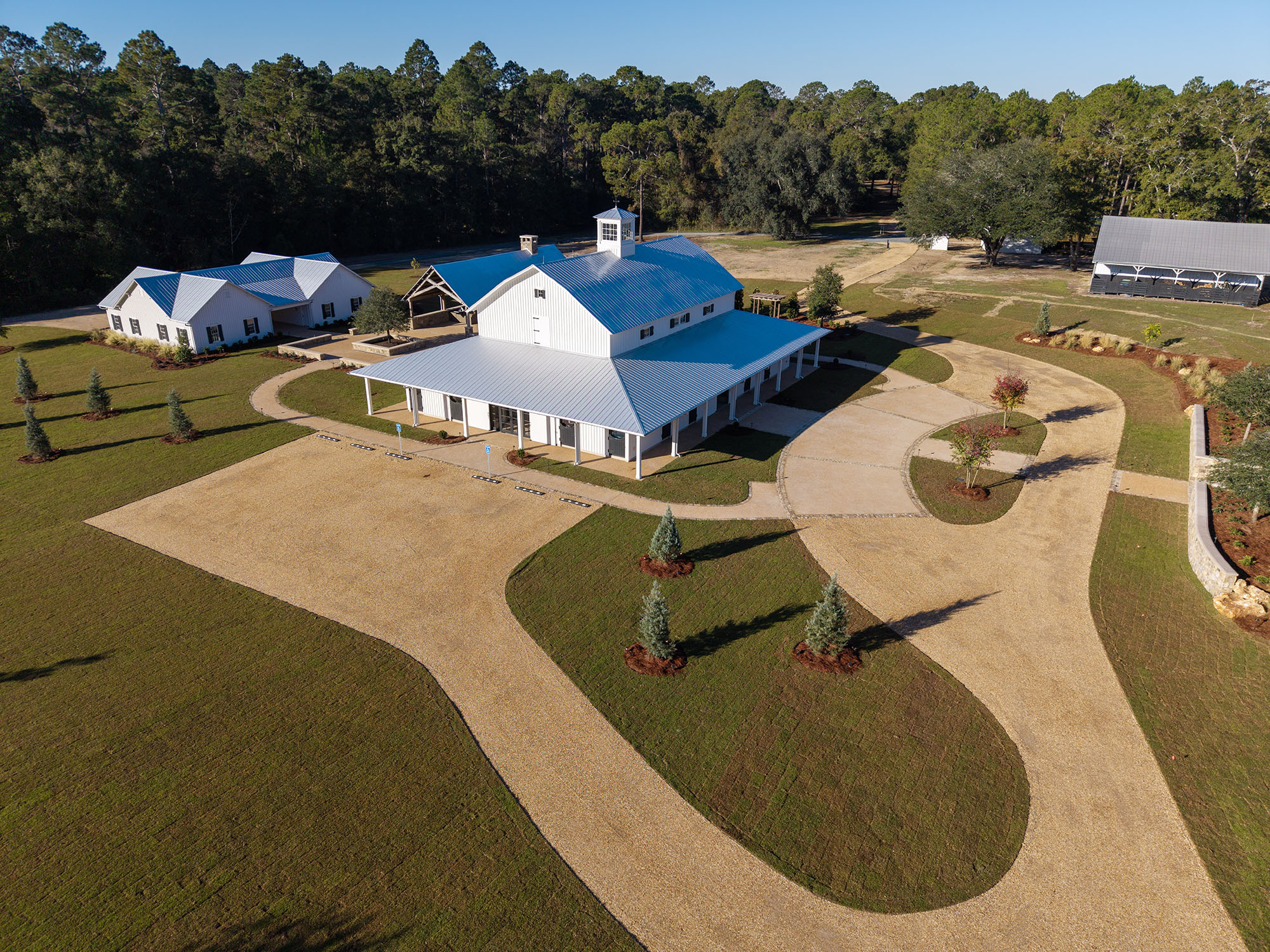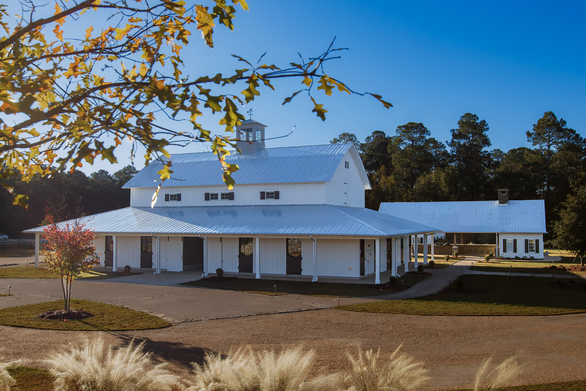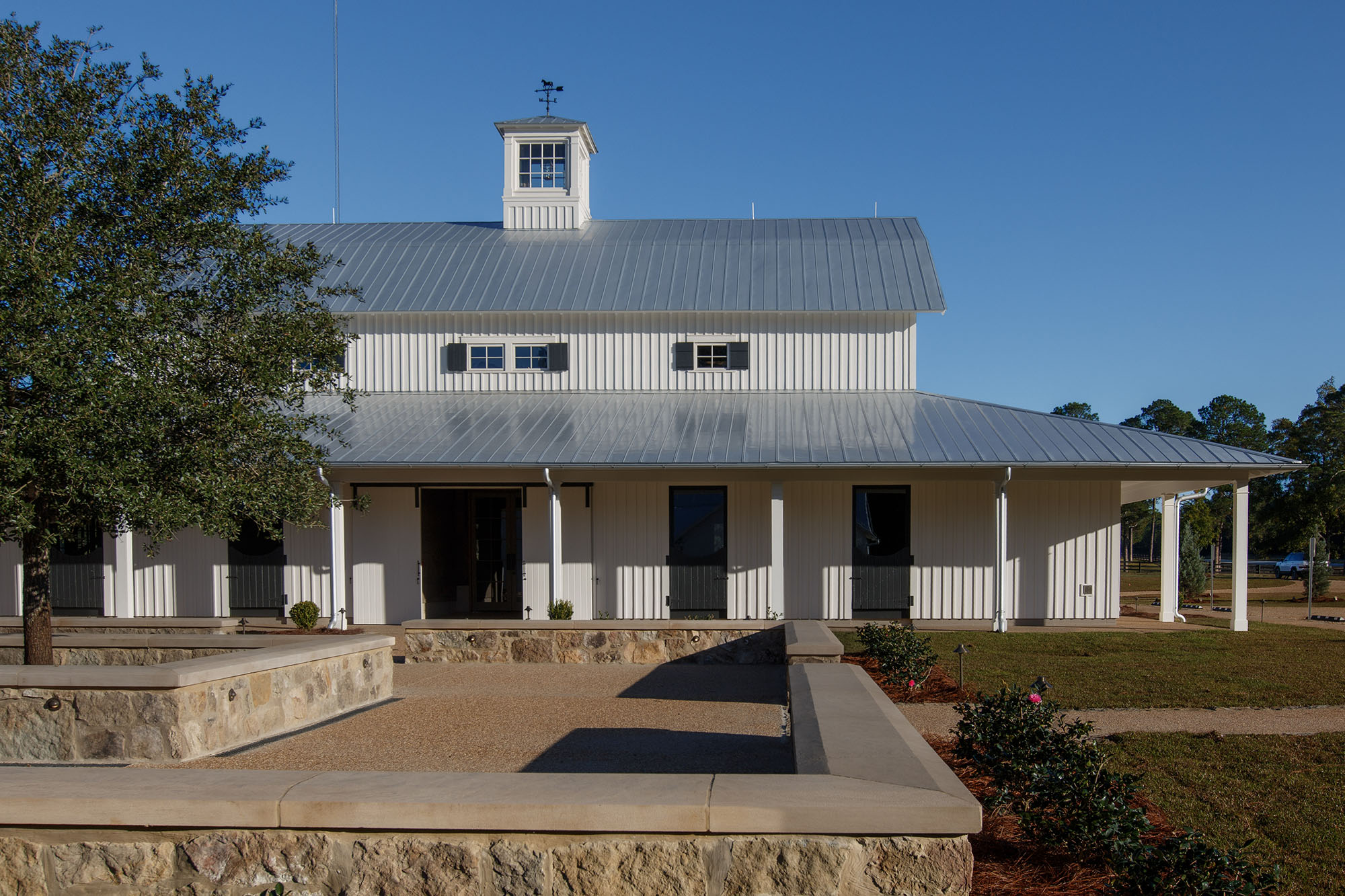 The Pavilion at Red Oaks is a design-build project and represents the first completed phase of a larger development. It serves as an accessory structure to major renovations of an existing barn at Red Oaks, which was renovated and completed in fall 2025 and will serve as the primary venue for future weddings.