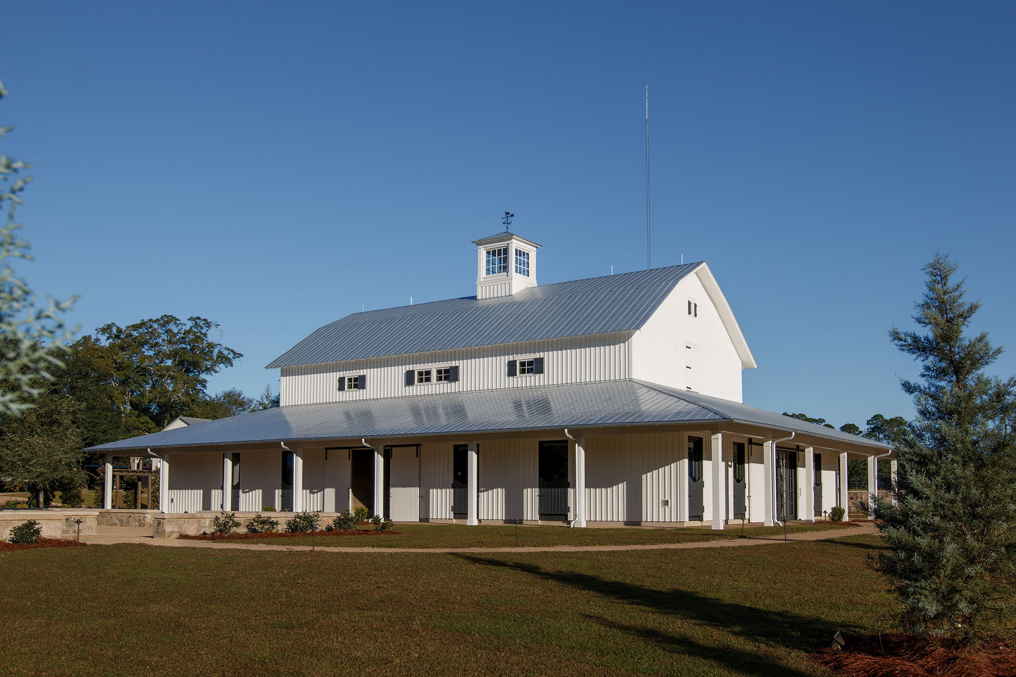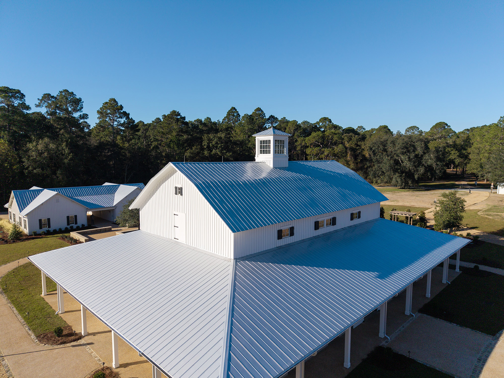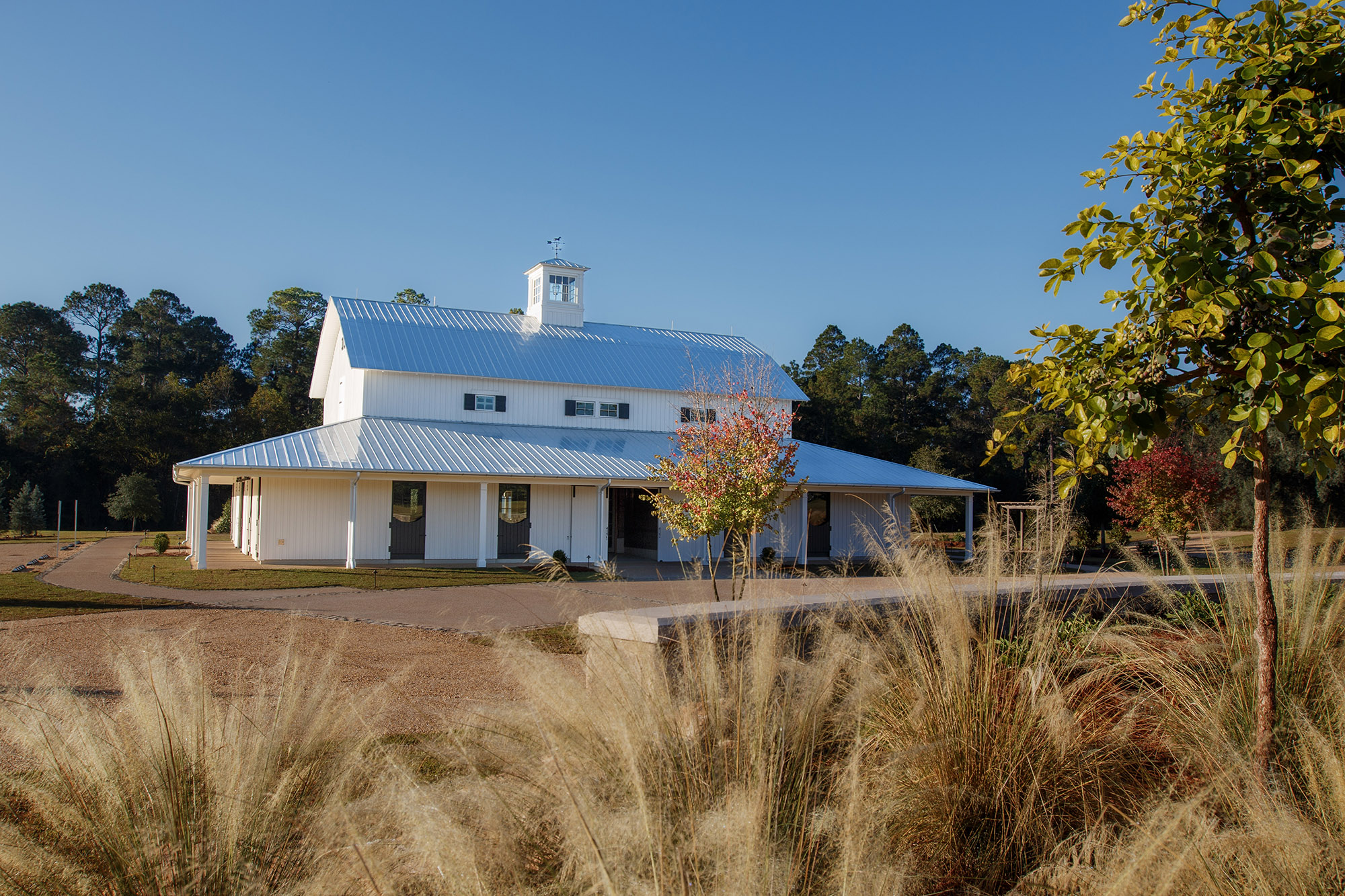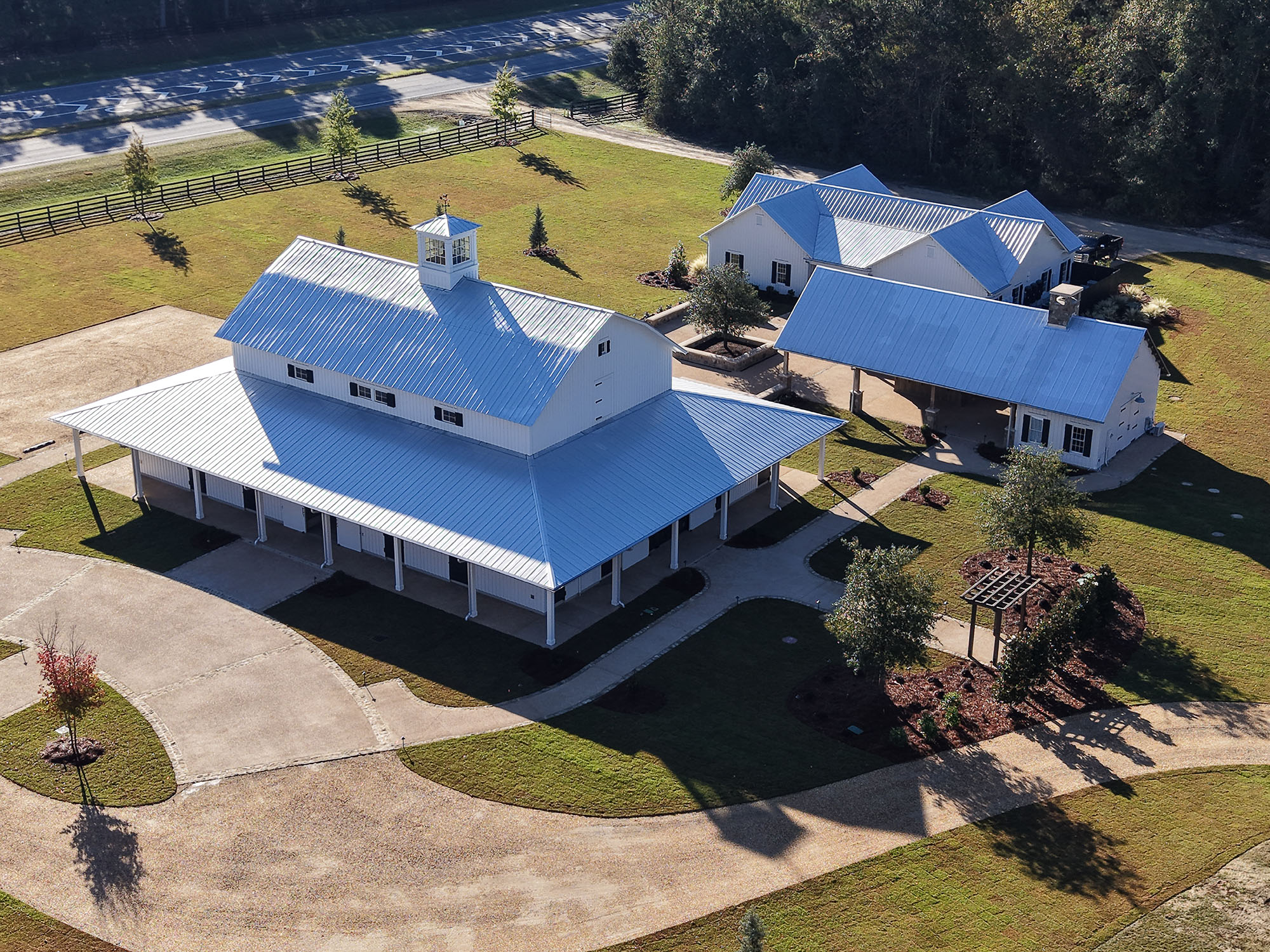 The Pavilion at Red Oaks is a design-build project and represents the first completed phase of a larger development. It serves as an accessory structure to major renovations of an existing barn at Red Oaks, which was renovated and completed in fall 2025 and will serve as the primary venue for future weddings.